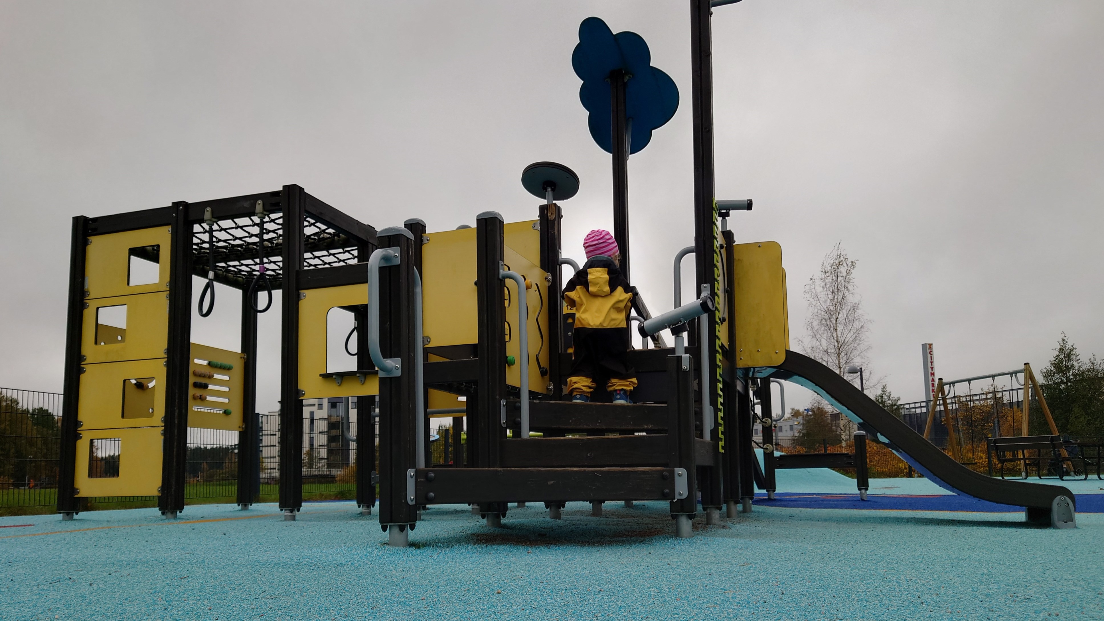 ![Kuva Lauri Lavannista leikkimässä tyttärensä kanssa Muumimaailmassa.]()